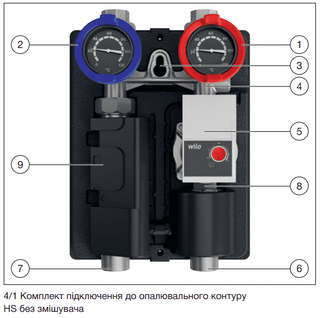 Комплект быстрого монтажа отопительного контура HS 25, для 1 отопительного контура без смесителя, комплектуется энергоэфетивным насосом Wilo YonosPara RS25/6